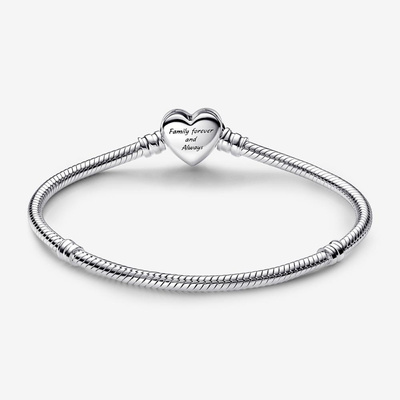 Đại diện cho tình yêu vĩnh cửu kết nối gia đình, vòng tay dây rắn Pandora Moments Sparkling Infinity Heart Clasp là món quà ý nghĩa dành cho những người quan trọng nhất đối với bạn. Khóa trái tim mở có các hạt đá dọc theo viền và một ký hiệu vô tận không đối xứng xoắn quanh trái tim. Mặt sau của khóa được khắc thông đi